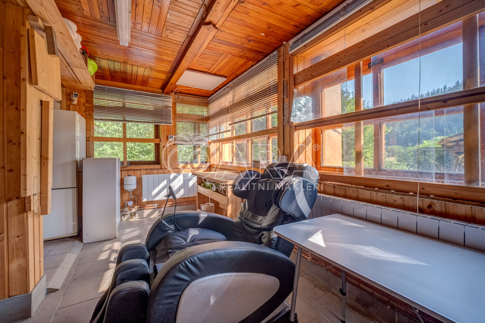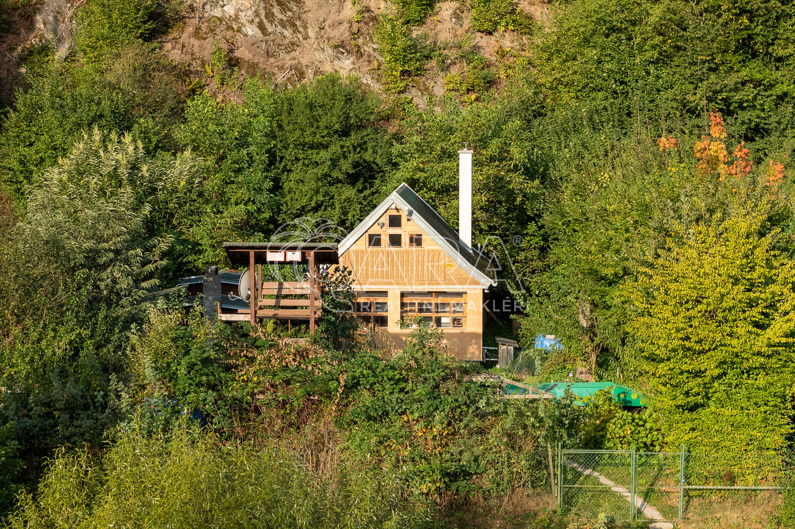 V exkluzivním zastoupení Vám nabízíme chatu přímo u břehu řeky Berounky k celoročnímu užívání s vlastním molem, která se nachází uprostřed přírodní rezervace v klidné chatové části obce Křivoklát, okres Rakovník. Chata po r. 2012 prošla kompletní rekonstrukcí, je zateplená, má instalované tepelné čerpadlo, vybudovanou kvalitní jímku s filtrací, 2 studny (užitková a pitná voda), zesilovač TV signálu, okenní klimatizaci, kamerový zabezpečovací systém a přípravu na fotovoltaiku. Dispozičně je řešena jako 2+kk, přičemž v přízemí je hlavní obytný prostor s kuchyňským koutem, kamny na TP a ústředním topením, vstupní chodba, WC a technické zázemí. V podkroví je k dispozici ložnice až pro 6 osob. Pozemek o celkové ploše 760 m2 přímo navazuje na břeh Berounky, z velké části je oplocený a poskytující naprosté soukromí, část pozemku podél řeky je volně průchozí. K chatě náleží vybudované kvalitní molo s možností kotvení loďky, což činí tuto nemovitost o to více atraktivní. Současný majitel zároveň využívá část pozemku za chatou (cca 200 m2) formou dlouhodobého nájmu. Vše podstatné je zajištěno, na nové majitele čeká pouze mírná revitalizace interieru a zahrádky. V této lokalitě se nachází významná ptačí rezervace s výskytem mnoha druhů vzácného ptactva, okolní lesy, voda a skály jim poskytují ideální útočiště - to vše se dá pozorovat z vyhlídkového „posedu“ pro dvě osoby umístěného přímo na zahradě před chatou. Venkovní posezení zajistí zastřešená pergola s krbem a udírnou, pro chladnější večery slouží menší navazující přístavba. Přístup k chatám v této lokalitě je pro automobily omezený, parkovat je možné cca 450 m od chaty. Obchody, restaurace, autobus. zastávka - vše přímo v Křivoklátu, pohodová dojezdovost do Prahy (50 km), Berouna (25 km), Rakovníka (15 km). Pro další informace volejte nebo pište na níže uvedené kontakty.