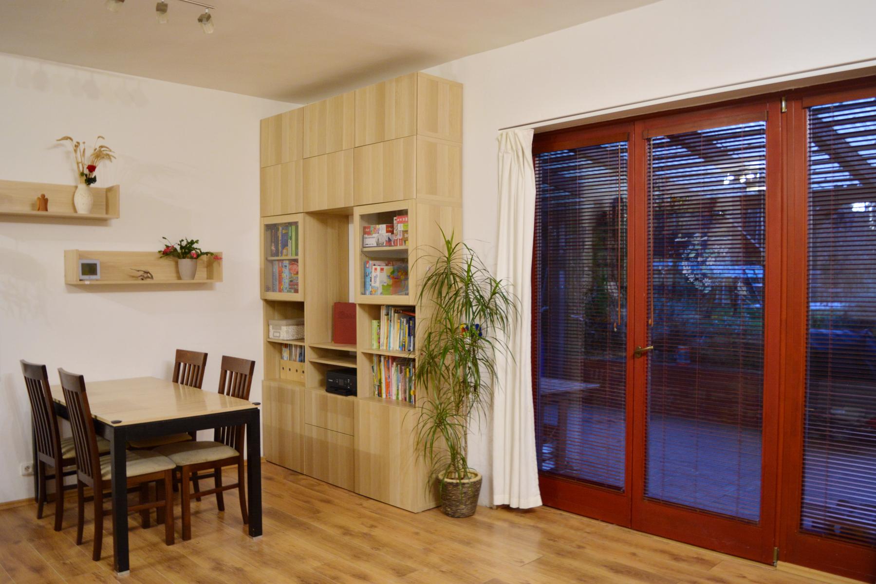 Prodej zánovního krajního řadového 2-podlažního RD s dispozicí 5+1 (126 m2) se zastřešenou terasou s výstupem skrze prosklené dveře a perkolou s posuvným uzavíráním. V přízemí je otevřená velká místnost s kompletně vybavenou kuchyní, jídelnou a obývacím pokojem s krbem. Dále sklad, pracovna a technická místnost. V patře 3 pokoje, samostatný WC, koupelnas vanou i sprchovým koutem a 2 umyvadly. Z patra jsou výsuvné schody na prostornou půdu s pochozí podlahou a vysokým podhledem. k nemovitostí patří 2 parkovací stání před domem. Udržovaná zahrada. Napojení na veřejnou kanalizaci, obecní vodovod + vlastní vrtaná studna. Fotovoltaická elektrárna (velmi nízké provozní náklady). Dlažby a plovoucí podlahy. Pro zájemce doporučujeme prohlídku kdykoliv po dohodě. <a href="https://www.eurobydleni.cz/byty/2_1/karvina/obec-karvina/pronajem/"><strong>Pronájem bytu 2+1 Karviná</strong></a>