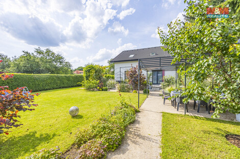 Nabízíme k prodeji jedinečný dvougenerační rodinný dům ve velice žádané lokalitě obce Brázdim o celkové dispozici 5+kk a výměře 198m2. Vzdušný zděný dům z roku 2015 s velkou udržovanou zahradou, automatickou závlahou, bazénem s ohřevem a prostornou garáží s dostatkem úložných prostor byl navržen s citem pro detail a komfortní rodinné bydlení za využití kvalitních materiálů. Unikátní dispozice domu se samostatnou jednotkou 1+kk o užitné ploše 32m2 a vlastním vstupem z něj v kombinaci s okolní přírodou činí ideální místo pro vícegenerační bydlení či kombinaci bydlení a podnikání. Velkoryse pojatému interiéru hlavní jednotky 4+kk dominuje obrovský prosvětlený obývací pokoj s krásnou kuchyní a jídelnou. V přízemí je dále k dispozici prostorné zádveří, praktická šatna pod schody, toaleta a technická místnost. V patře na Vás čekají 3 ložnice, velká koupelna se saunou a samostatná toaleta. Obchod, škola, školka i autobusová zastávka PID s přímým spojením do Letňan za 25 minut přímo v obci.