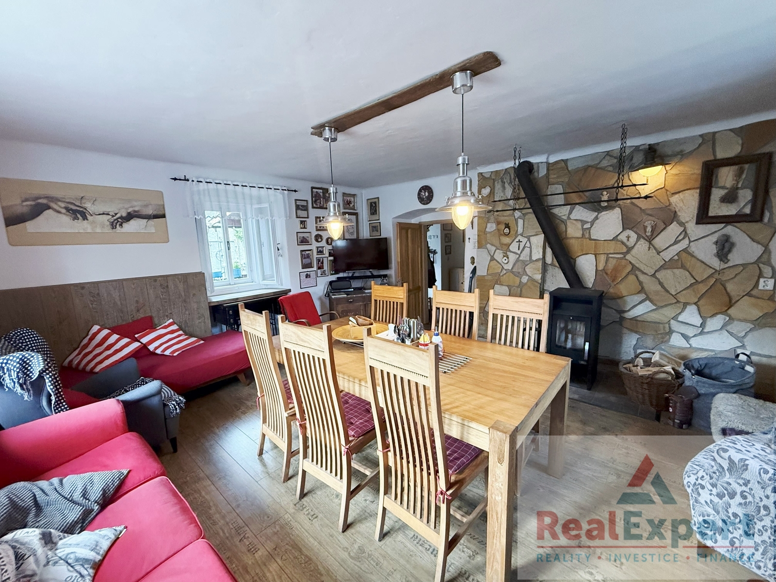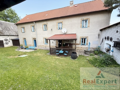 Nabízíme k prodeji pečlivě udržovanou rodinnou usedlost v malebné obci (městys) Vraný, v krásném klidném prostředí mezi Slaným a Louny. Tato výjimečná nemovitost zaujme nejen svým historickým kouzlem, ale i skvělým technickým stavem a širokými možnostmi využití - od pohodlného rodinného bydlení přes rekreační objekt až po stylové ubytování pro hosty. Hlavní budova Dvoupodlažní dům o dispozičním řešení 5+1 (zastavěná plocha 19,5 x 6,8 m), s užitnou plochou cca 200 m2 (+prostorná půda) a tradiční architekturou prošel v minulých letech citlivou rekonstrukcí, která zachovala původní ráz stavby. Najdete zde 4 prostorné pokoje (ložnice), stylový obývací prostor s jídelnou a krbovými kamny, vybavenou kuchyni, koupelnu a WC. Interiér spojuje přirozené materiály a moderní pohodlí - dřevěné podlahy, dekorativní trámy i výhled do zeleně. K dispozici je dále dílna, sklípek a garáž (6x3 m) Rozlehlý dvůr s naprostým soukromím a navazující zahrada o výměře 572 m2 Zahrada s pečlivě udržovaným trávníkem, květinovými záhony, altánem a bazénem vytváří soukromou oázu klidu. Část pozemku lze po projednání s příslušnými úřady využít jako samostatnou stavební parcelu - ideální jako investice do budoucna. Stodola 16,5 x 7,8 (cca 130m2) a hospodářské stavení (cca 45 m2) Původní zemědělské objekty jsou v dobrém technickém stavu, stodola má výšku stropu v nejvyšším bodě 8 metrů, objekty nabízejí široké možnosti využití - od skladovacích prostor přes ateliér až po rekonstrukci na apartmány či stylové wellness. Součástí hospodářského stavení je i kamenný sklep cca 35 m2. Veškeré inženýrské sítě k dispozici Nemovitost je napojena na elektřinu 230/400V, vodovod, plyn i kanalizaci. Navíc je k dispozici vlastní kopaná studna (11 m hloubka) s dostatkem vody např. pro zahradní zálivku. Dále je k na pozemku podzemní retenční nádrž na dešťovou vodu cca 10 m3. Obec (městys) Vraný je dobře dostupná autem i MHD, s veškerou občanskou vybaveností (3x obchod, 2x restaurace, obecní úřad, pošta, knihovna, fotbalové hřiště, kadeřnictví, koupaliště, škola 1. stupeň, školka, lékař - vše v místě.) Ideální kombinace klidu venkova s výhodami městské infrastruktury. Zajímavá příležitost - doporučujeme.