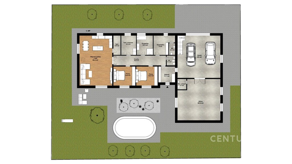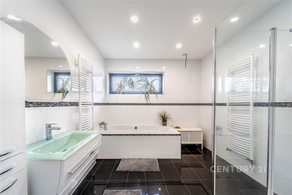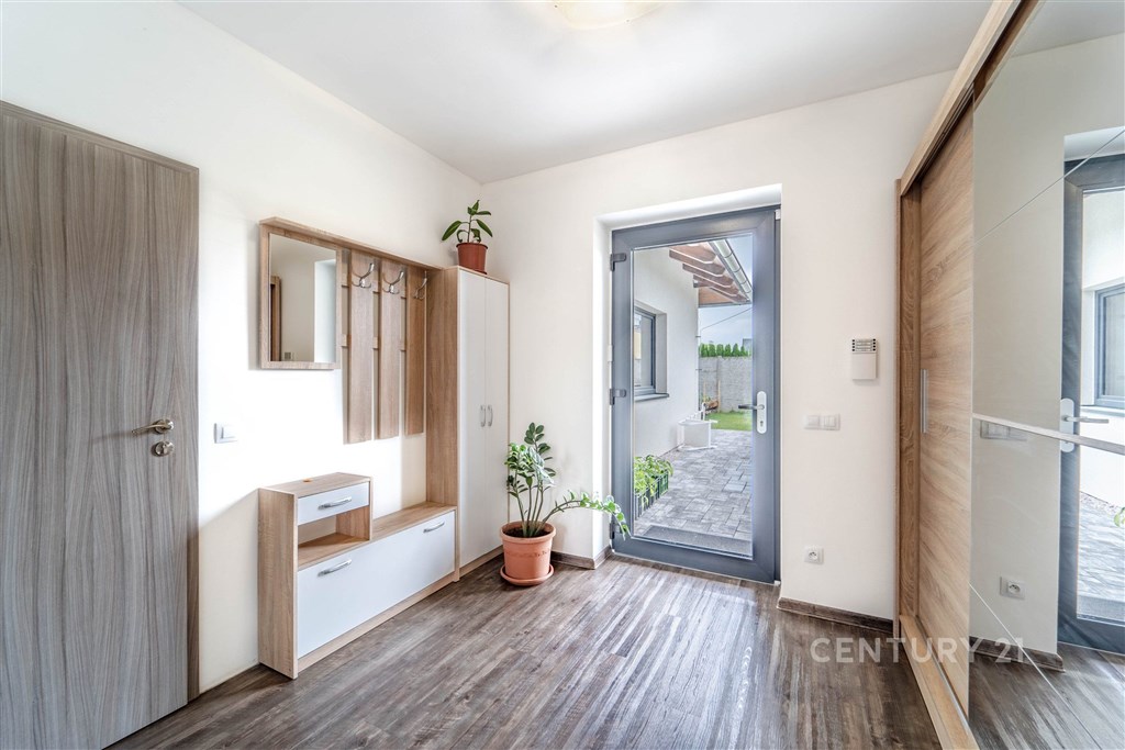 Bezbariérové komfortní bydlení na Prazevýchod. Ve výhradním zastoupení si Vám dovolujeme nabídnout ke koupi velmi praktickou a atraktivní nemovitost pro potřebu bezbariérového bydlení jak domu, tak užívání okrasné zahrady s dřevinami. Komfort a pohodlí zajišťují široké vstupy, místnosti i zpevněné plochy na pozemku. Dům s komerčním prostorem ve více než vynikajícím stavu v klidné části obce Křenice ve velmi žádané lokalitě Praha Východ vzdálené pouhé 2 km od Prahy Uhříněves a 5 km od Říčan. Tento reprezentativní prostorný dům z roku 2018, je možno využít i jako dvou generační či pro bydlení spojené s podnikáním. Dům se skládá z obývacího pokoje (62,4 m2) s elegantním kuchyňským a jídelním koutem s přímým vstupem na terasu vybízející k relaxaci a zaslouženému odpočinku. Nabízí také úchvatný pohled do precizně udržované zahrady V přízemí se dále nachází dvě ložnice (14,4 m2), koupelna (10,3 m2) s vanou a sprchovým koutem, kosmetické studio (9 m2) s vlastním vstupem a sociálním zázemím (2,4 m2), samostatné WC (3,1 m2) s bidetem, technická místnost (9,5 m2), chodba (19,5 m2) a zádveří (11,1 m2), které umožňuje mimo jiné vstup do dílny (52,6 m2) s garáží (60 m2) a malé koupelny (3,1 m2) pro domácí mazlíčky. Celé přízemí má podlahové topení. Podkroví bych definovala slovy, světlo, prostor a seberealizace, kterou zde můžete uplatnit. Dispozice 4 kk se skládá prostorného obývacího pokoje (58,4 m2) s kuchyňským koutem, z ložnice (38,8 m2), pokoje (30 m2), pokoje (18 m2), šatny (62,40 m2), malé pracovny/kumbálu (3,4 m2), koupelny s vanou (18,6 m2). Zde jsou radiátory. Dům je obklopen úchvatnou zahradou se spoustou stromů, keřů, květin a krásných záhonů. Nechybí bazén, dětské hřiště či zeleninové záhony a nádrž na dešťovou vodu. Kryté stání pro dva vozy už je jen třešinkou na dortu. Pozemek je oplocen zídkou z KB bloků s dřevěnou výplní v kombinaci se skládanými betonovými dílci pro zajištění maximálního soukromí. Dopravní dostupnost je výborná MHD (303 na Černý Most, 366 na Depo Hostivař, 686 na žel.st Úvaly, Říčany, 765 do Říčan), silnice, dálnice D1. Okolí nabízí celou řadu kulturních, přírodních i turistických zajímavostí. V letních dnech si užijete koupání na Plovárně Jureček či v Aquapalace Praha, kávičku si vychutnáte na náměstí v Říčanech, Uhříněvsi či v Průhonickém zámku. Cyklisti ocení okolní cyklostezky.