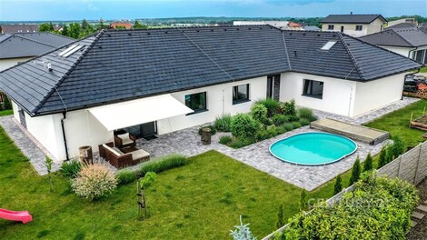 Luxusní rodinný dům v prestižní lokalitě Sluštice / Křenice - Váš nový domov snů! Hledáte místo, kde se kvalita, komfort a moderní design propojují…