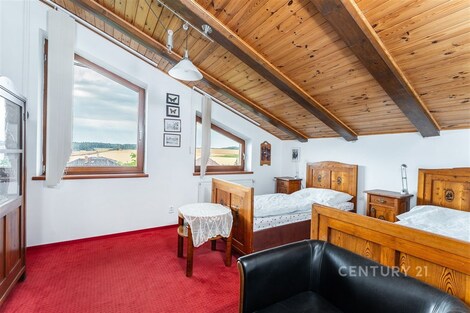 Hledáte prostorný rodinný dům s velkou zahradou, klidem a přitom jen kousek od Prahy? Tento výjimečný dům v Nové Vsi pod Pleší je přesně tím, co hledáte. Moderně koncipovaný dům z roku 2006 je rozložen do dvou nadzemních podlaží, přičemž obytná část nabízí dostatek prostoru včetně balkonu a soukromí pro každého člena rodiny. Velmi užitečný je centrální vysavač včetně odtahu smetí u kuchyňské linky. Dominantou domu je terasa s dechberoucím výhledem, ideální pro odpočinek nebo rodinné posezení. Přilehlá zahrada je dokonale udržovaná a poskytuje ideální prostor pro relaxaci, produkční zahrádku či dětské hry. Zdrojem tepla je elektrokotel, ale významnou úsporou jsou krbová kamna opatřená výměníkem tepla, což pomáhá snižovat náklady a navíc vás krb potěší i příjemnou atmosférou. Současnou energetickou třídu lze zejména instalací tepelného čerpadla a fotovoltaiky zlepšit až na třídu C. Na zahradě je praktický zděný zahradní domek s dílnou a skýtá také malý sklípek. K zahradnímu domku přiléhá pergola s grilem. Zde lze pohodlně uspokojit i početné rodinné oslavy. Na pozemku je vrtaná studna s tlakovým čerpadlem, což umožňuje spolehlivou zálivku celé zahrady. Dům je opatřen zabezpečovacím zařízením. Parkování je bezproblémové díky garáži a dalším venkovním parkovacím místům. Obec Nová Ves pod Pleší disponuje kompletní občanskou vybaveností, snadnou dostupností do větších měst a příjemným prostředím pro rodinný život. Pokud hledáte ideální kombinaci soukromí, prostoru, moderního vybavení a skvělé lokality, tento dům vás nadchne už při první prohlídce. Přijďte se přesvědčit na vlastní oči.