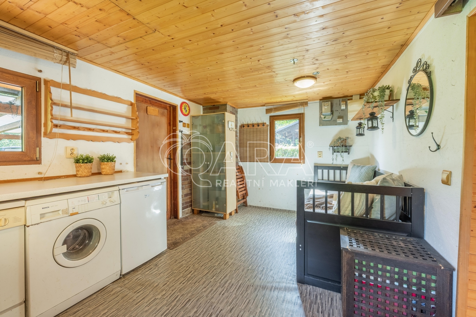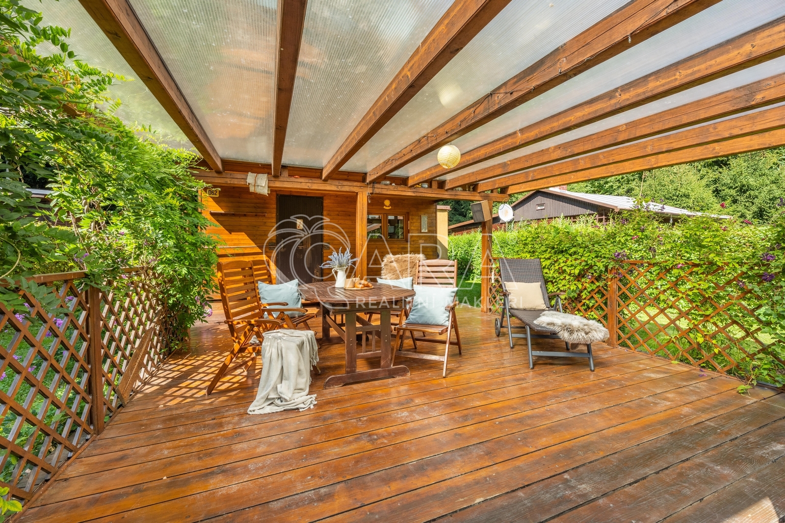 Exkluzivní nabídka prodeje rekreační chaty v malebném údolí přímo na břehu řeky, u soutoku řek Sázavy a Blanice. Nemovitost je připravena k okamžitému užívání, je průběžně rekonstruována. Není určena k trvalému bydlení. Objekt má celkovou výměru 76 m2 (vnitřní plocha 44 m2), je ale vyřešen velmi prakticky: přes velkou krytou terasu (32 m2) vstoupíme do první místnosti s kuchyňkou a pokračujeme do hlavní místnosti, kde se pohodlně vyspí několik lidí a zbyde i prostor pro stůl ke společnému jídlu a hrám. Zajímavostí pokoje je velký světlovod a krbová kamna. Z této místnosti pak je vstup do zrekonstruované koupelny se sprchovým koutem a WC. Objekt má vlastní studnu, ohřev vody zajišťuje bojler. Na pozemku je jímka odpadních vod. Vytápění prostoru zajišťují kamna. Na pozemku se nachází zahradní bouda pro skladování a posezení u ohniště. Chata stojí na rovinatém pozemku o celkové výměře 519 m2 s živým plotem a vzrostlými keři. Sympatická výměra zajišťuje dostatek vlastního prostoru v soukromí, ale zároveň nevyčerpává majitele náročnou údržbou. Okolní zástavba je čistě rekreační, celá oblast údolí řeky je oblíbenou odpočinkovou destinací v blízkosti Českého Šternberka. Chata se nachází pouhé 4 minuty od sjezdu z dálnice D1 - Divišov (41. km), po dálnici však v údolí není ani památky.