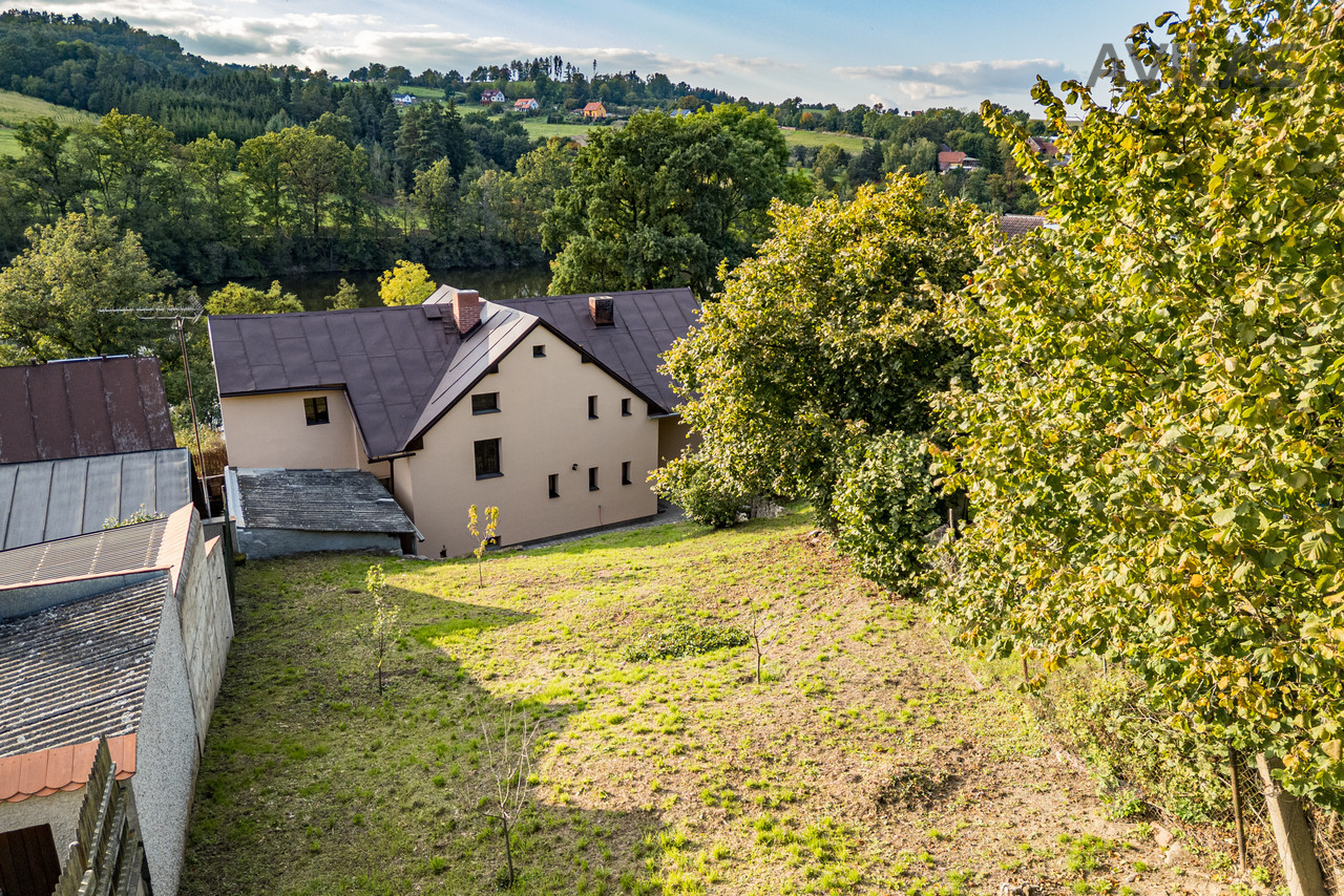 Nabízíme k prodeji prostorný a kompletně zrekonstruovaný rodinný dům o dispozici 6+kk a užitné ploše 207 m2 na pozemku 1084 m2. Dům se nachází v klidné části obce, na konci zástavby s krásným výhledem na rybník Papírník, přesto s výbornou dostupností do Benešova (11 km) i do Prahy - Chodov cca 52 km. Dům prošel rekonstrukcí - nové rozvody elektřiny, vody, kanalizace, vytápění a nové radiátory. Zateplení podlahy, střechy a částečně fasády. Plastová okna s dvojsklem a nová fasáda. Vytápění zajišťuje 18 kW elektrokotel. V pokoji s přípravou pro kuchyň je instalována pro krb s výměníkem. Zatím není k dispozici energetický štítek, proto uvádíme třídu G. Dispozice: Přízemí: předsíň, kuchyň s jídelním koutem, prostorný obývací pokoj, ložnice, samostatné WC. 1.patro: tři samostatné pokoje + další pokoj v podkroví. Dům je podsklepený - ve sklepě se nachází technické zázemí. Pozemek a okolí: Na udržované zahradě se nachází přístřešek pro posezení a vstup do garáže. K dispozici je také parkovací stání pro 4 vozy před domem. Nemovitost leží v tiché lokalitě ideální pro rodinné bydlení či rekreaci, obklopené přírodou. Lokalita: Postupice - škola, školka , obecní úřad, pošta a obchody s potravinami. Benešov - 11 km (veškerá občanská vybavenost). Praha - Chodov cca 52 km. Klidná oblast s krásným výhledem na rybník a okolní zeleň. Financování: V případě zájmu Vám zdarma zprostředkujeme výhodné financování formou hypotéky. Více informací a domluvu prohlídky Vám rádi poskytneme v naší realitní kanceláři.