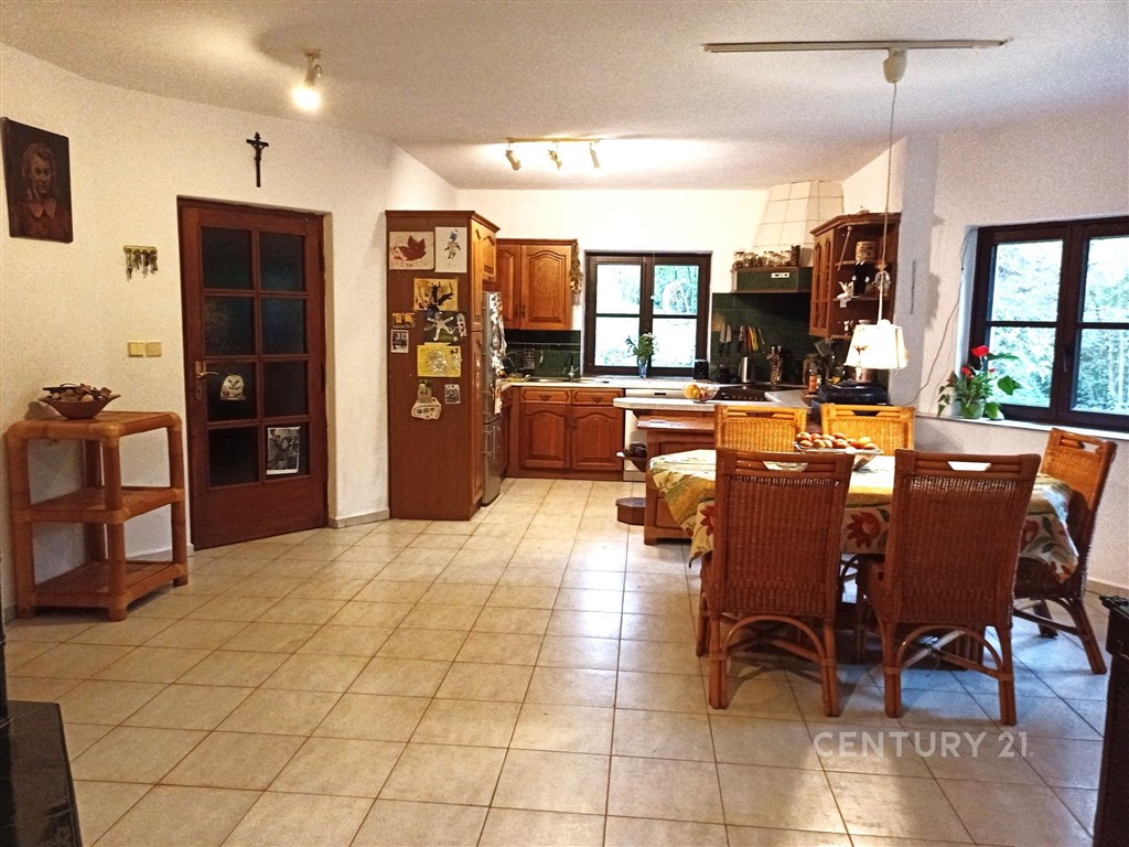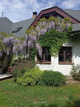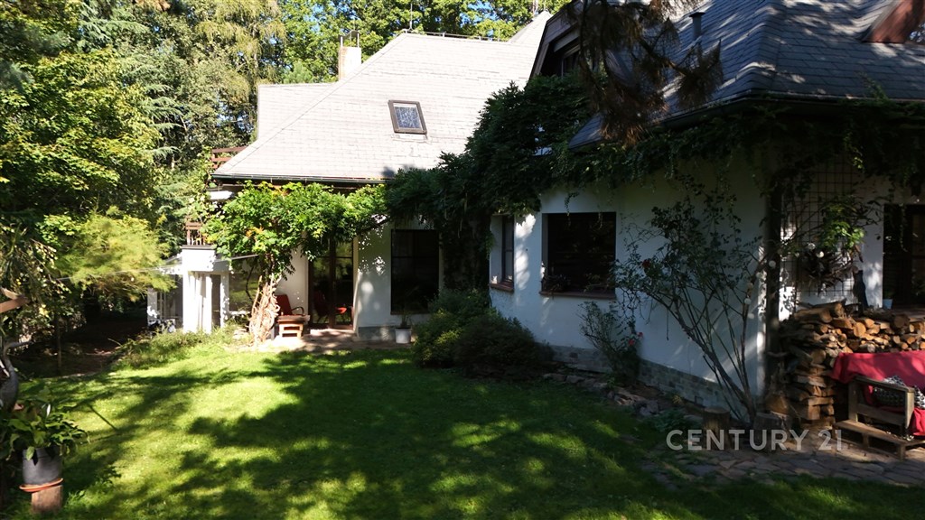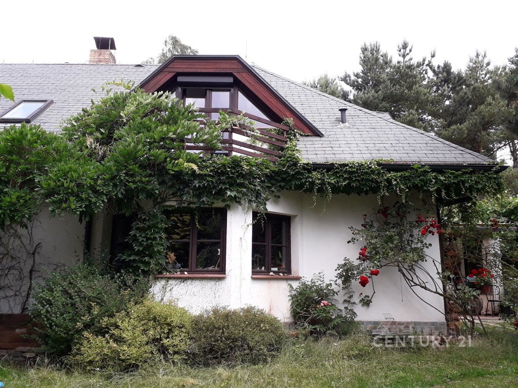 Ve výhradním zastoupení majitele nabízíme k prodeji samostatný rodinný dům 6+1 v Černošicích. Dům se nachází v klidné části na rozhraní obytné zástavby a lesoparku v docházkové vzdálenosti od veškeré občanské vybavenosti. Je umístěn na svažitém pozemku se vzrostlou zelení a poskytuje klidné bydlení s veškerým komfortem. Dispozičně je rozčleněn na dvě hlavní podlaží, mezipatro a podkroví. V 1NP se nachází vstupní chodba, kuchyně, obývací pokoj, prádelna, kotelna, technická místnost, bazén, sauna a sociální zařízení. V mezipatře je prostorná pracovna s východem na terasu, kterou je možno upravit na další ložnici se samostatným sociálním zařízením. Ve 2 NP a podkroví jsou umístěny tři samostatné ložnice, každá ložnice má přístup z chodby a disponuje samostatnou koupelnou s WC. Tato dispozice tedy umožňuje rozdělení domu na jeden hlavní byt a 3 až 4 další samostatné jednotky poskytující plné soukromí uživatelů, což ocení především vícečetné nebo vícegenerační rodiny. Případně je možné jednotlivé pokoje upravit a používat k pronájmu. Dům je v současnosti vytápěn elektrokotlem a kachlovými kamny, je připojen na vlastní studnu a čističku odpadních vod, připojení veřejného vodovodu a kanalizace je v realizaci. Na pozemku je k dispozici samostatná garáž a stáj pro 3 až 4 koně. Další informace Vám rádi poskytneme na vyžádání, případně při osobní prohlídce.