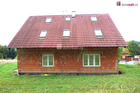 Dumrealit.cz Vám zprostředkuje ve výhradním zastoupení prodej rodinného domu, který se nachází v katastrálním území Líšno, obec Bystřice. Dům 7+KK, o podlahové ploše 168 m2 se rozprostírá na pozemku o celkové výměře 811 m2, dosud veden jako rozestavěná stavba, přestože od roku 2010 byl obýván. Stavba není dosud zkolaudována. Vnitřní prostory domu jsou v zásadě dokončené. Dispozičně se jedná o dvoupodlažní rodinný dům s částečně obytným podkrovím. V přízemí se nachází vstupní chodba, technická místnost s ovládáním čerpadla a úložnými prostory, koupelna se sprchovým koutem a WC, ložnice, dále prostorný obývací pokoj propojený s kuchyní, u které je i prostorná spíž. Kuchyňská linka byla zhotovena na míru kuchyňským studiem. Z obývacího pokoje vede francouzské okno na zahradu. Schodiště v domě má kovovou konstrukci s dřevěnými schodnicemi a je situováno uprostřed domu. V patře se nacházejí tři dětské pokoje, z nichž každý má navazující spací prostor v podkroví (mezonetové řešení). Dále je zde menší pokoj pro hosty, samostatné WC a koupelna s vanou, dvěma umyvadly a dalším WC. Okna v domě jsou plastová, střešní okna značky Velux jsou dřevěná. Vytápění domu zajišťuje tepelné čerpadlo s možností přepnutí na elektrické topení. V přízemí je podlahové vytápění doplněné radiátory, v patře jsou radiátory. Dům je napojen na vlastní studnu, možnost snadného připojení na obecní vodovod, vše již připraveno. Odpady jsou svedeny do jímky, která je na sousedním pozemku, tudíž je nutnost vybudování vlastní jímky. V obci není zatím vybudovaná kanalizační síť. Z venkovní strany domu chybí dokončení fasády - dům nemá vnější omítky. Zahrada byla původně částečně upravená, v současnosti je bez zásadní údržby. Okolí domu tvoří rodinné domy, jedná se o klidnou část s blízkostí přírody a lesa. Město Bystřice vzdálené 1, 5 km nabízí veškerou občanskou vybavenost, včetně mateřské a základní školy, zdravotnické zařízení, poštu, banku, úřad, vlakové a autobusové spojení na Benešov, Prahu, Tábor. Přípojka na rychlostní komunikaci Praha - České Budějovice pouhé 2 km od domu. Tato nabídka je vhodná pro početnější rodinu, která si chce každodenně užít oázu klidu a maximální soukromí. PENB není vyhotoven, proto uvádíme hodnotu G. Doporučuji osobní prohlídku! V případě zájmu velice rádi pomůže se zprostředkováním financování. Pro více informací volejte na uvedené telefonní číslo. Ev. číslo: 652760. Energetický štítek: G