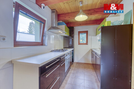 Nabízíme útulný rodinný dům v obci Čím, okrese Příbram, nadohled vodní nádrže Slapy. Kompletně zateplený dům nabízí obytný prostor 3+kk vhodný k l trvalému, nebo rekreačnímu bydlení. Dům nabízí dvě nadzemní podlaží s užitnou plochou 70 m2 a je obklopen udržovanou zahradou rozloze 811 m2 s ovocnými a okrasnými stromy. Teplou vodu zajišťuje el. bojler, vytápění krbová kamna s podlahovým vytápěním. Dům je nabízen včetně zařízení, tedy i s kompletně vybavenou kuchyní, včetně myčky. Na zahradě je k dispozici dílna a prostorný sklípek pro skladování ovoce. Voda je zajištěna z vlastní studny nebo z vodovodního řadu a odpad je řešen 10 m2 jímkou. Stav nemovitosti je velmi dobrý (kolaudace 2007) s číslem ev., což umožňuje okamžité užívání. Nepropásněte tuto jedinečnou příležitost v srdci přírody, 40 minut jízdy od Prahy, 30 minut do Příbrami. Pro více informací kontaktujte makléře. S financováním Vám rádi pomůže