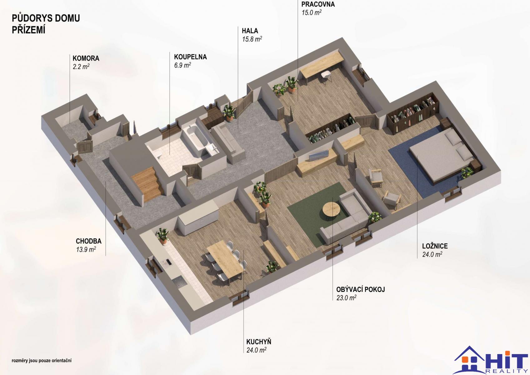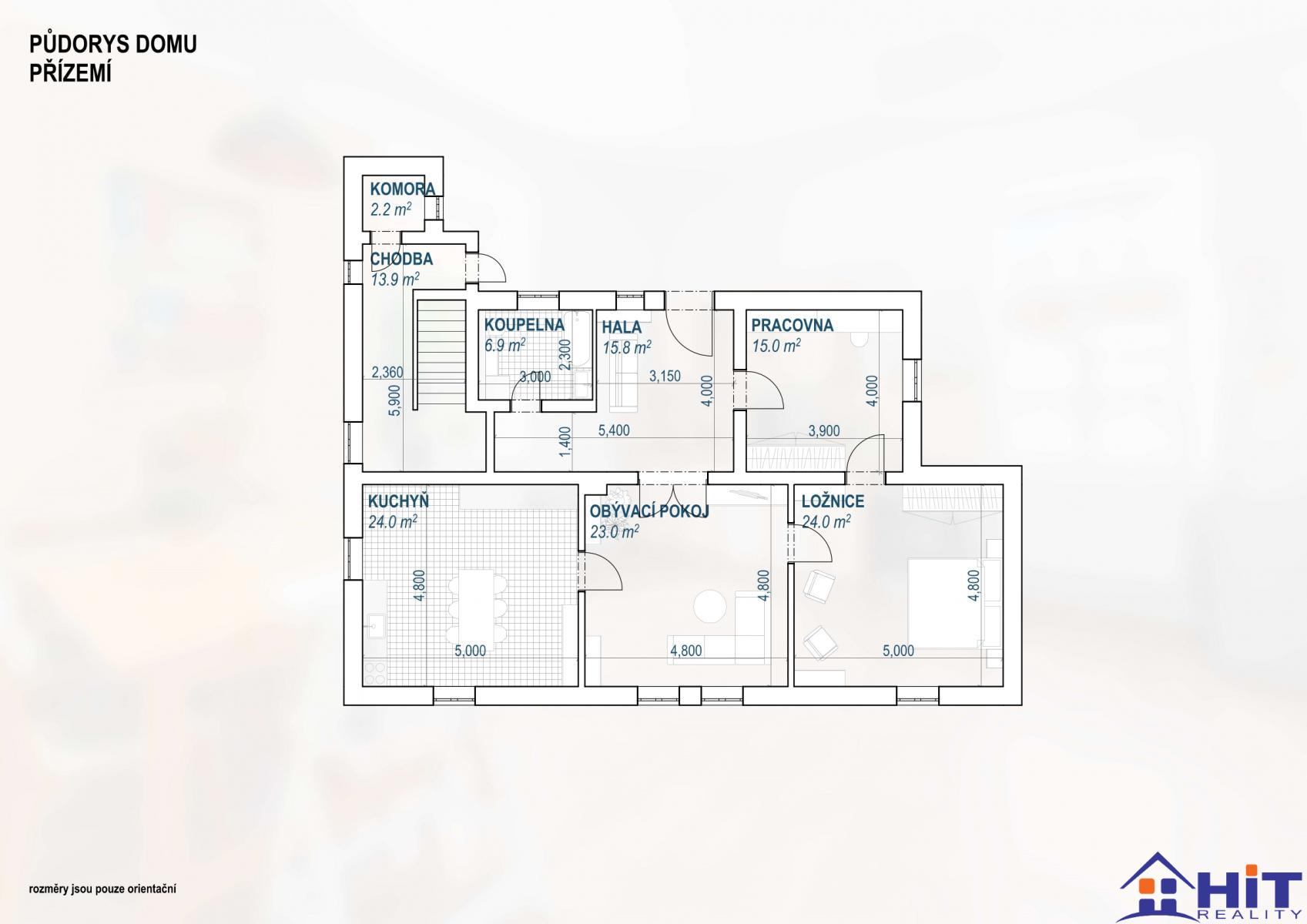 Prodej rodinné vily 198 m2 s nebytovým prostorem, pozemek 425 m2, Široká, Říčany