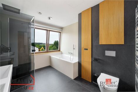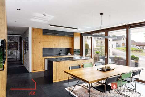 Prodej exkluzivní moderní vily 6+kk, 282 m, Tmaň komfortní bydlení pro náročné Hledáte dokonalé propojení moderní architektury, nadstandardního vybavení a klidné lokality s výbornou dostupností do Prahy? Tahle novostavba moderní vily v obci Tmaň vás okouzlí už na první pohled. Vila byla kolaudována v roce 2023 a postavena s důrazem na kvalitu, úspornost a pohodlí. Každý detail domu byl promyšlen tak, aby nabídl špičkové rodinné bydlení i moderní technologie pro maximální komfort. Klíčové parametry nemovitosti: Dispozice: 6+kk 3 světlé dětské pokoje Užitná plocha: 282,08 m Pozemek: 1 634 m Kolaudace: 2023 Stylová a kvalitní architektura, moderní materiály Chytrá domácnost ovládání vytápění, osvětlení i zabezpečení Podlahové topení s tepelným čerpadlem Krb v obývacím pokoji pro útulnou atmosféru Příprava na klimatizaci Automatické zavlažování zahrady Meteostanice a sladkovodní akvárium (1 700 litrů) jedinečný interiérový prvek Rovná pochozí střecha design i funkčnost Obecní vodovod + vlastní vrt + dešťová nádrž Obecní kanalizace (jímka s přečerpáváním) Přednosti této nemovitosti: Výborná dopravní dostupnost do Prahy ideální pro rodiny i práci z domova Klidná, bezpečná a malebná lokalita pod Brdy Luxusní a přitom energeticky úsporné bydlení Perfektní zázemí pro rodinu, relax i reprezentaci Dům je připraven nabídnout vám komfort, soukromí i eleganci každého dne. Těšíme se na osobní prohlídku, při které naplno oceníte atmosféru tohoto výjimečného domu. S financováním vám rádi pomůžeme. <a href="https://www.eurobydleni.cz/domy/rodinny-dum/beroun/obec-tman/prodej/"><strong>Prodej rodinného domu Tmaň</strong></a>