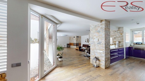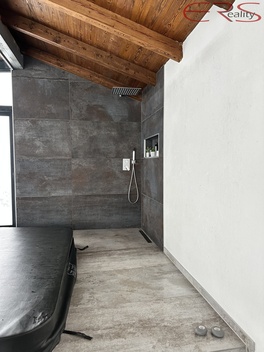 Rodinný dům po kompletní rekonstrukci (1990 / 2020) | bezbariérový | moderní komfort Základem komplexu je bezbariérový rodinný dům (výstavba 1990), který prošel kompletní rekonstrukcí v roce 2020 - 2025, včetně výměny střešní krytiny. Dům působí moderně, je postavený z kvalitních materiálů a nabízí světlý, vzdušný interiér s důrazem na detail a praktičnost (vestavby, široká chodba se skříněmi, velkoformátová okna se stíněním, kvalitní povrchy). V roce 2013 byla realizována přístavba garáže. Srdcem domu je obývací pokoj s kuchyní o ploše 84 m2, kde nechybí krb se vzduchovody pro efektivní rozvod tepla do dalších částí domu. Komfort doplňuje klimatizace (chlazení i vytápění) a zabezpečovací systém. Koupelny jsou vybaveny podlahovým vytápěním, které je samostatně řízeno termostaty včetně dálkového ovládání. Dispozice a zázemí domu: • Garáž cca 60 m2 (pro auta, dílnu i sklad) • Posilovna s přípravou pro saunu • Sprchový kout + WC (u sportovní části) • Vstupní hala a navazující komunikace • 4 ložnice • 2× koupelna s WC, sprchovým koutem a vyhřívanou vířivou vanou • 1× samostatné WC pro hosty • Technická místnost se zázemím Wellness objekt (2021) | cca 110 m2 | celoroční relax na úrovni Součástí nemovitosti je samostatný wellness objekt z roku 2021 o zastavěné ploše cca 110 m2, navržený jako plnohodnotné zázemí pro celoroční odpočinek i zábavu. Už z exteriéru zaujme kombinací dřeva a velkých prosklených ploch, navazujícím letním posezením s grilem a praktičností provozu (ve sklepě je technologie cca 8 m2). Dominantou objektu je prosklená wellness část o ploše cca 54 m2, kde je vířivka pro 5 osob a Swimm Spa s protiproudem (plavání, masáže, jemný sprinkel). Velkou předností je možnost otevřít prosklenou část po celé ploše, takže v létě funguje jako vzdušná terasa a v zimě jako útulný vyhřívaný „zimní pavilon“ se světlem a výhledem. Dispozice je dotažená do detailu: kuchyň s barem, WC, koupelna a sauna s kombinací solné stěny, páry a infra. Nechybí odpočinková místnost s lůžkem, sprcha u bazénové části a další zázemí pro pohodlný provoz. Samozřejmostí je vyhřívání celého objektu včetně bazénové části, takže wellness je využitelné celoročně. Nedokončená stavba v zadní části pozemku (rekonstrukce 2022) | cca 300 m2 + garáž cca 70 m2 | potenciál pro bydlení i komerci Další výraznou hodnotou tohoto komplexu je samostatná nedokončená stavba v zadní části pozemku. Původní objekt o užitné ploše cca 300 m2 prošel kompletní rekonstrukcí v roce 2022 a současně byla realizována přístavba garáže cca 70 m2. Objekt je aktuálně veden jako stavba pro výrobu a skladování, přičemž rekonstrukce byla koncepčně směřována k přestavbě na rodinné bydlení s kompletním zázemím. Díky velikosti a možnostem uspořádání je zde reálná varianta komerčního využití, kombinace podnikání se zázemím, případně bydlení pro jednu až dvě rodiny dle zvoleného projektu. V rámci rekonstrukce proběhly zásadní investice: nová střecha, okna, zateplení, nový plášť budovy, garážová vrata, dále revitalizace stropních konstrukcí, sítí a dalších technických částí. Interiér je aktuálně ve stavu rozpracovanosti, což umožňuje budoucímu vlastníkovi dokončit dispozice i standardy přesně podle svých potřeb. Zahrada a pozemek | parková úprava | zavlažování | jezírka | osvětlení Pozemek o výměře 2 744 m2 je řešený jako parkově upravená zahrada s důrazem na estetiku i jednoduchý provoz. Výsadba zahrnuje i exotické rostliny a celý pozemek je vybaven kompletním automatickým zavlažováním. U wellness části se nachází dva vodní prvky: • biotop bez filtrace (přírodní princip) • jezírko s filtrací • Jezírka jsou osazena rybami: koi kapři, jeseteři, štiky a sumec. Atmosféru večer podtrhuje osvětlení pozemku, které zvýrazňuje zahradu i jednotlivé části komplexu. Tento soubor nemovitostí je pro ty, kteří nechtějí dělat kompromisy: kvalitní bezbariérové bydlení, wellness na úrovni, parkově řešená zahrada a k tomu ještě samostatný objekt s dalším využitím. Výsledkem je nemovitost, která nabízí komfort, soukromí i investiční potenciál v jednom.