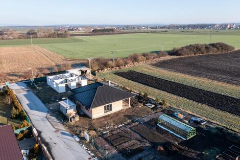 Nabízíme k prodeji moderní přízemní rodinný dům (bungalov) v obci Kolomuty, jen pár minut jízdy od Mladé Boleslavi. Dům je situován v klidné lokalitě s krásným výhledem do okolní krajiny a nabízí ideální kombinaci soukromí, komfortu a výborné dostupnosti města. Dispozice domu je 4+kk a zahrnuje prostorný obývací pokoj s kuchyňským koutem a přímým vstupem na terasu a zahradu, tři samostatné pokoje, koupelnu s vanou i sprchovým koutem, samostatné WC, šatnu, technickou místnost a vstupní chodbu. Promyšlené řešení domu nabízí dostatek úložných prostor a pohodlí pro rodinné bydlení. Dům je postaven z kvalitních materiálů, má valbovou střechu, plastová okna s izolačními trojskly a je připraven k dokončení dle představ nového majitele. Vytápění je řešeno tepelným čerpadlem (nižší provozní náklady) v kombinaci s podlahovým topením. Navíc k dispozici bude rekuperace s dotykovým centrálním regulátorem. Na zahradě pak oceníte akumulační nádrž (6 m3) na dešťovou vodu se vsakovacím tělesem. Infrastruktura: vodovod, veřejná kanalizace, asfaltová silnice Termín dokončení: květen 2026 Pozemek poskytuje dostatek prostoru pro zahradu, terasu i parkování dvou aut. Lokalita je ideální pro rodiny s dětmi klidná obec, minimum provozu, příroda na dosah a zároveň rychlé napojení na Mladou Boleslav a dálnici D10. Hlavní výhody: novostavba rodinného domu dispozice 4+kk tepelné čerpadlo nízké náklady klidná lokalita výborná dostupnost Mladé Boleslavi možnost dokončení dle vlastního vkusu Pokud hledáte moderní bydlení v příjemném prostředí s dobrou dostupností města, je tato nemovitost ideální volbou. Velmi doporučuji prohlídku, kde Vám bude možné představit tuto nemovitost včetně veškerých podkladů, které od majitele máme k dispozici. Koupi domu lze financovat hypotečním úvěrem s jehož vyřízením Vám může pomoci náš zkušený hypoteční poradce. Těším se na viděnou na prohlídce! <a href="https://www.eurobydleni.cz/byty/1_1/mlada-boleslav/obec-mlada-boleslav/pronajem/"><strong>Pronájem bytu 1+1 Mladá Boleslav</strong></a>