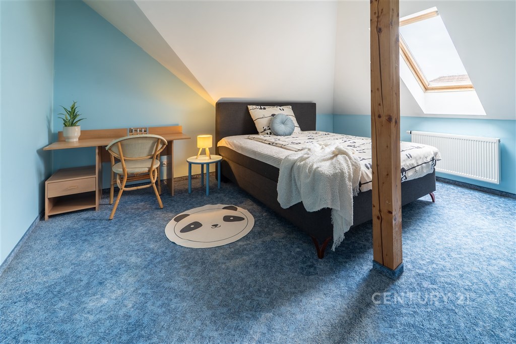 Hledáte prostorný rodinný dům se zahradou, klidem a kompletní občanskou vybaveností, přitom s výbornou dostupností do Prahy i Kladna? Pak pro vás mám zajímavou nabídku rodinného domu v Unhošti, který splní nároky větší rodiny na prostor, soukromí i komfort. Rodinný dům o dispozici 5+kk nabízí užitnou plochu 247 m2 a je situován na pozemku o velikosti 673 m2. Dům je prakticky rozdělen na denní a klidovou část. V přízemí se nachází prostorný obývací pokoj o výměře 32 m2, který je propojen s kuchyní a jídelnou. Samotná kuchyň má výměru necelých 23 m2 a poskytuje dostatek prostoru pro komfortní vaření i rodinné stolování. Dále se zde nachází vstupní zádveří, samostatný pokoj o velikosti 13 m2, koupelna s WC a přímý vstup z obývací části na terasu. Podkroví domu nabízí tři prostorné pokoje, každý s výměrou přes 20 m2, které lze využít jako ložnici a dětské pokoje. Dále je zde komora a velká koupelna s WC. Dominantou horního patra je velkorysá hala o výměře 47 m2, kterou lze využít jako domácí kancelář, hernu, relaxační zónu nebo druhý obývací pokoj. Velkým benefitem nemovitosti je možnost parkování až pro pět vozidel přímo na pozemku a zároveň samostatná garáž o velikosti 23 m2. Zahrada nabízí příjemné terasové posezení, ideální pro rodinné chvíle, relaxaci i grilování. Součástí pozemku je také vlastní malé jezírko, které dotváří klidnou atmosféru celého místa. Dům je vytápěn elektrickým topením a nabízí možnost připojení na plyn. Zároveň je zde příprava na vložení krbové vložky. Dům je ihned k dispozici k nastěhování. Lokalita Unhoště patří mezi vyhledávané díky své výborné dostupnosti. Do Prahy i do Kladna se dostanete přibližně za deset minut jízdy. Město zároveň nabízí kompletní občanskou vybavenost. Tato nemovitost je ideální volbou pro rodinu, která hledá prostorné a klidné bydlení s dobrou dostupností města. Rád vám pomohu také s vyřízením financování formou hypotečního úvěru. V případě zájmu o více informací nebo osobní prohlídku mě neváhejte kontaktovat.