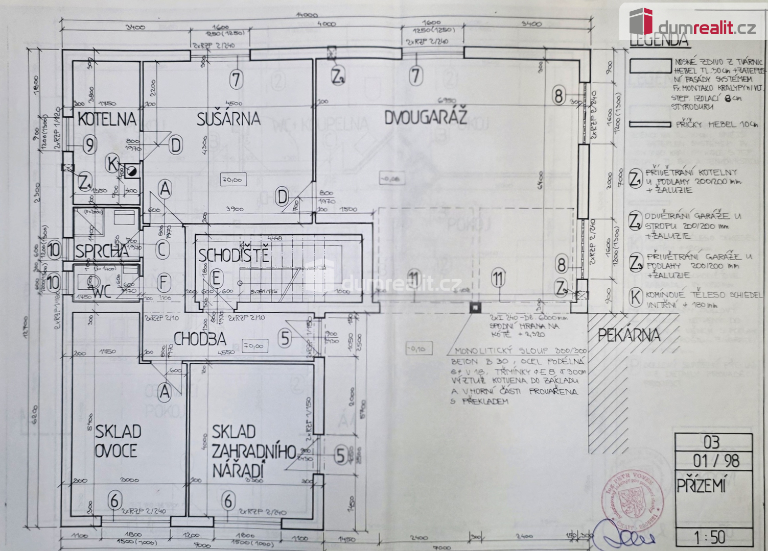Dumrealit.cz Vám zprostředkuje prodej nemovitosti nedaleko centra Neratovic. Jedná s o stavbu nepodsklepeného, podkrovního, rodinného domu s přízemím určeným k podnikání. Dům je navržen a postaven z z cihelných tvárnic Hebel s použitím kontaktního zateplovacího systému Montako 80 mm, na vnějším límci. Konstrukce stropů je z železobetonových dutinových panelů a sedlového krovu s vykýři. Jako krytina jsou použita kanadské šindele. V přízemí objektu se nachází dvojgaráž, sušárna, kotelna a sociální zázemí objektu. Do podkroví je přístup zajištěn monolitickým dvouramenným schodištěm. V podkroví jsou obytné místnosti : obývací pokoj, obytná kuchyně s jídelnou, dvě ložnice, pracovna, koupelna s WC a chodba. Objekt je na severovýchodní straně umístěn na hranici se sousedním pozemkem. Objekt je odizolován proti zemní vlhkosti pomocí živičných pasů Glasbit. Tepelná izolace podlah je provedena z z desek Kraste, tl.70 mm. Podkroví je odizolováno proti kročejovému hluku pásy Mirelon. Tepelná izolace podkroví je z desek Orsil tl.14 cm, kladených mezi krokve. Objekt je napojen na obecní rozvod vody, kanalizaci, elektroinstalaci a plyn. Vytápění nemovitosti je zajištěno rozvody UT napojeným na plynový kotel, který také ohřívá zásobník vody o objemu 155 litrů. Topení v přízemí je podlahové, v garážích pod stropem. V podkroví jsou rozvody vedeny ve zdech k topným tělesům, osazeným hlavicemi s thermoregulačními ventily Danfos. Okna objektu jsou plastová. Dům stojí v centru města s kompletní občanskou vybaveností na dosah ruky - školy, školky, gymnázium, obchodní akademie, poliklinika, nemocnice, kino, bazén, sportoviště i široká nabídka obchodů (Tesco, Billa, Lidl, Albert, DM). Dopravní spojení je vynikající: Praha (PID, vlak), Mělník (autobus), Brandýs a Čelákovice (vlak). Proč právě tento dům? ✔ Skvělá poloha v centru města ✔ Soukromí na vlastním oploceném pozemku ✔ Možnost téměř okamžitého bydlení i modernizace dle vlastních představ ✔ Možnost podnikání ve vlastním objektu nebo přestavba na druhou bytovou jednotku se samostatným vstupem ✔ Ideální pro rodinu s dětmi Neváhejte a domluvte si prohlídku - tato nabídka v centru Neratovic je opravdu výjimečná! Prodávající si vyhrazuje právo vybrat zájemce na základě jím zvolených kritérií. Ev. číslo: 654899. Energetický štítek: G