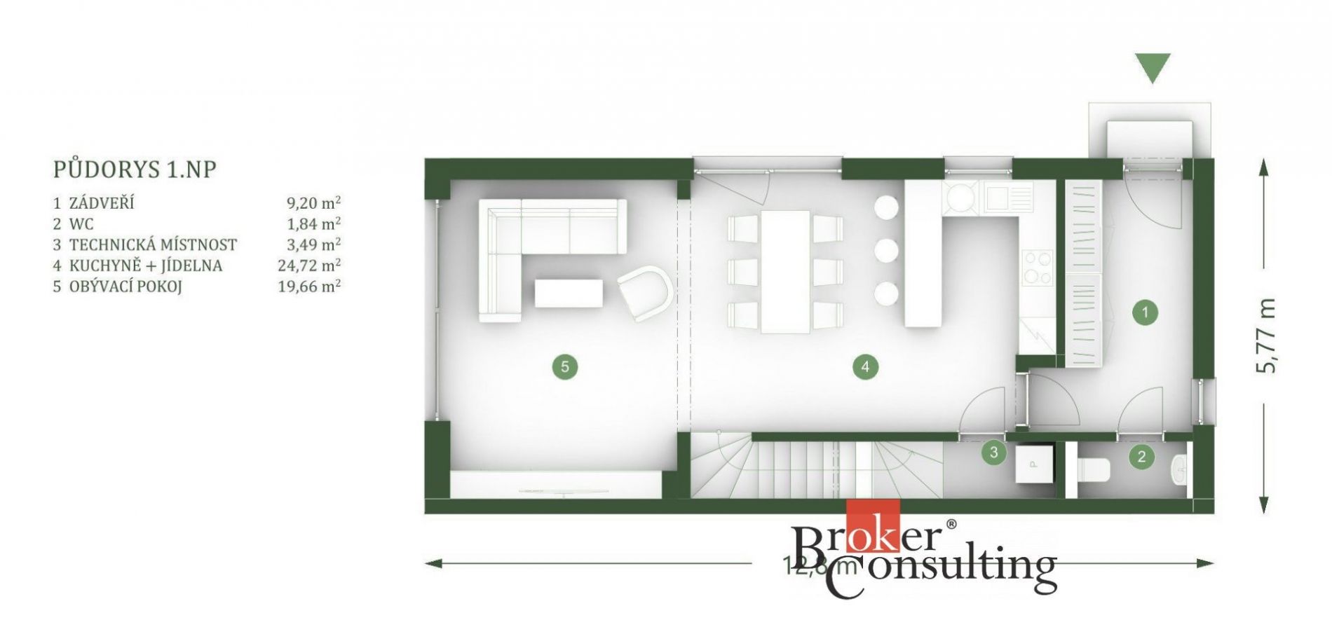 Hledáte nový domov, kde se spojuje kvalita, klid a skvělá dostupnost do města? Máme pro vás výjimečnou nabídku, jedná se o moderní rodinný dvojdům o dispozici 5+kk v klidné rezidenční lokalitě Kladno Dubí, obklopené přírodou, přitom jen několik minut od centra města a s výborným spojením do Prahy. Tato právě dokončená novostavba o dispozici 5+kk nabízí užitnou plochu 119 m a je ideální volbou pro rodinné bydlení, ale i kohokoliv, kdo chce kvalitní zázemí pro práci z domova s komfortem a prostorem navíc. Pozemek o velikosti 352 m je ideálním místem pro odpočinek, grilování nebo dětské hry. Přímý vstup z obývacího pokoje na zahradu vytváří plynulé propojení vnitřního a venkovního prostoru. Promyšlené dispoziční řešení pro pohodlný každodenní život: 1. NP: Prostorné zádveří s místem na vestavěné skříně (9,2 m) Technická místnost se zázemím pro pračku a sušičku (3,49 m) Samostatné WC (1,84 m) Otevřená kuchyně s jídelnou (24,72 m) Obývací pokoj (19,66 m) s velkoformátovým HS portálem vedoucím přímo na zahradu 2. NP: Tři pokoje (2×11,85 m a 11,48 m) dost místa pro děti, pracovnu i hlavní ložnici Šatna (8,0 m) Koupelna s vanou (4,05 m) Samostatné WC (1,72 m) Prostorná chodba se schodištěm (11,32 m) Dům je postaven jako moderní dřevostavba s důrazem na kvalitu, energetickou úspornost a přírodní materiály. Vytápění zajišťuje tepelné čerpadlo Daikin vzduchvoda s teplovodním podlahovým topením, které udržuje ideální teplotu v každé místnosti. Velkoformátová okna s trojskly zajišťují dostatek světla i skvělou tepelnou izolaci. V koupelně vás potěší stylové vybavení od SIKO, interiérové dveře Kasard a dřevěné podlahy dodávají interiéru hřejivý pocit domova. Bezpečnostní systém Jablotron, optický internet, i přípojka užitkové vody pro zahradu jsou třešničkou na dortu. Lokalita je plná zeleně, s přímým napojením na lesy a cyklostezky. Ideální místo pro milovníky klidu a přírody. Přitom jen pár minut od města a do centra Prahy se dostanete za cca 30 minut ať už autem, nebo brzy také po plánované rychlodráze. Dům je kompletně dokončený a připravený k nastěhování. Stačí si přivézt nábytek a začít novou kapitolu svého života. <a href="https://www.eurobydleni.cz/pozemky/zemedelska-puda/opava/obec-koberice/prodej/"><strong>Prodej zemědělské půdy Kobeřice</strong></a>
