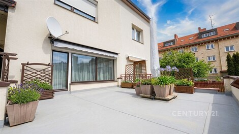 Představte si místo, kde máte všechno doslova na dosah ruky - a přesto si doma můžete vychutnat klid, soukromí a vlastní kousek zeleně. Právě takový je tento dům, který stojí v klidné části centra města. Polovina zděného dvojdomu s vlastní zahradou nabízí prostor, světlo i atmosféru, kterou dnes mnoho lidí hledá, ale jen málokdy skutečně najde. Dům je postaven jako poctivá cihlová stavba, je zateplený a vybavený moderními okny s trojskly, která zajišťují příjemné ticho i tepelný komfort. Energetická náročnost budovy spadá do třídy C, což přináší rozumné provozní náklady. O vytápění se stará plynový kotel a střechu kryje odolná krytina Alukryt. Zastavěná plocha domu činí přibližně 160 m2 a stejně velký prostor nabízí i zahrada - ideální místo pro odpočinek, rodinné posezení nebo letní grilování. Dispozice domu je rozložena do tří podlaží. V přízemí se nachází kuchyně propojená s velkorysým obytným prostorem a vstupem na terasu. Ve druhém podlaží najdete ložnice s balkony a koupelnu. Třetí podlaží nabízí další pokoje a druhou koupelnu, díky čemuž může dům bez problémů sloužit i jako vícegenerační bydlení. Pod střechou se navíc nachází půda poskytující další úložný prostor. Dům je zároveň kompletně podsklepený, takže nabízí velkorysé zázemí pro skladování, dílnu nebo technické místnosti. Na zahradu navazuje terasa o velikosti přibližně 20 m2, kde si můžete v klidu vychutnat ranní kávu, odpolední slunce nebo večerní sklenku vína. Velkým bonusem, který je v centru města skutečně vzácný, je parkování. Součástí domu je garáž pro dvě auta zaparkovaná za sebou a další místo nabízí příjezdová plocha před domem, kde lze pohodlně zaparkovat ještě jeden až dva vozy. Samotná lokalita patří mezi největší přednosti této nemovitosti. V okruhu několika minut chůze se nachází vše, co každodenní život potřebuje - autobusové i vlakové nádraží přibližně 200 metrů od domu, dvě základní školy ve stejné vzdálenosti, mateřská škola doslova za rohem, nemocnice asi 300 metrů pěšky a divadlo přibližně 500 metrů od domu. Nedaleko jsou také dvě nákupní centra. Přesto si tato část města dokázala zachovat příjemně klidnou atmosféru, která dává bydlení pocit soukromí a pohody. Tento dům tak nabízí jedinečné spojení prostoru, praktického uspořádání a výjimečné polohy. Je to místo, kde můžete ráno vyjít na zahradu s kávou v ruce, odpoledne dojít pěšky do školy nebo do divadla a večer se vrátit domů do klidu vlastního zázemí. Zkrátka místo, které má atmosféru skutečného domova.