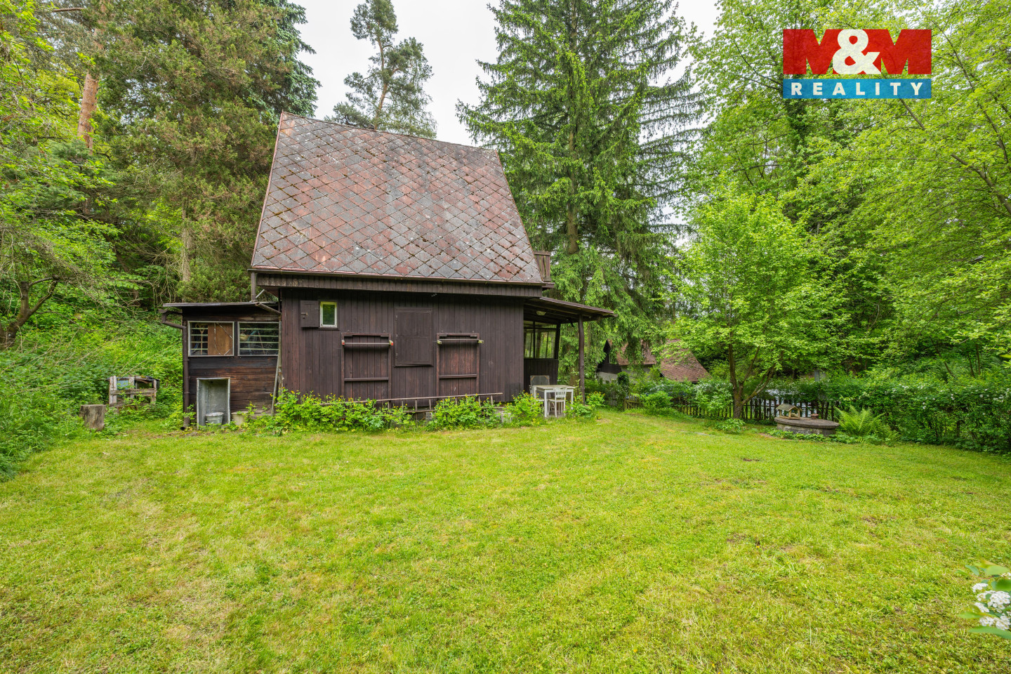 Nabízíme k prodeji dřevěnou chatu o užitné ploše 69 m2 na vlastním pozemku o výměře 492 m2 v klidné a vyhledávané lokalitě obce Kamenný Újezdec v okrese Praha-západ. Chata se nachází v příjemném prostředí nedaleko řeky Sázavy, mimo záplavovou oblast. S chatou se prodává i podíl na příjezdové cestě. Do chaty je zavedena elektřina (230/400 V), voda je přivedena z obecního vodovodu a odpad je sveden do jímky. Ohřev vody zajišťuje elektrický bojler, vytápění je možné kamny na dřevo nebo elektrickým přímotopem. Dispozičně je chata řešena ve třech podlažích. V 1.NP se nachází veranda, obývací místnost s litinovými kamny, menší ložnice, toaleta a kuchyňka s komorou se vstupem do sklepní spižírny (cca 4 m2). Ve 2.NP se nachází prostorná ložnice s balkónem a koupelnou se sprchovým koutem a umyvadlem. Ve 3.NP jsou dva menší pokojíky. Na zahradě je k dispozici kůlna (cca 5 m2), venkovní krb a udírna, ideální pro víkendový odpočinek. Financování lze hypotečním úvěrem.